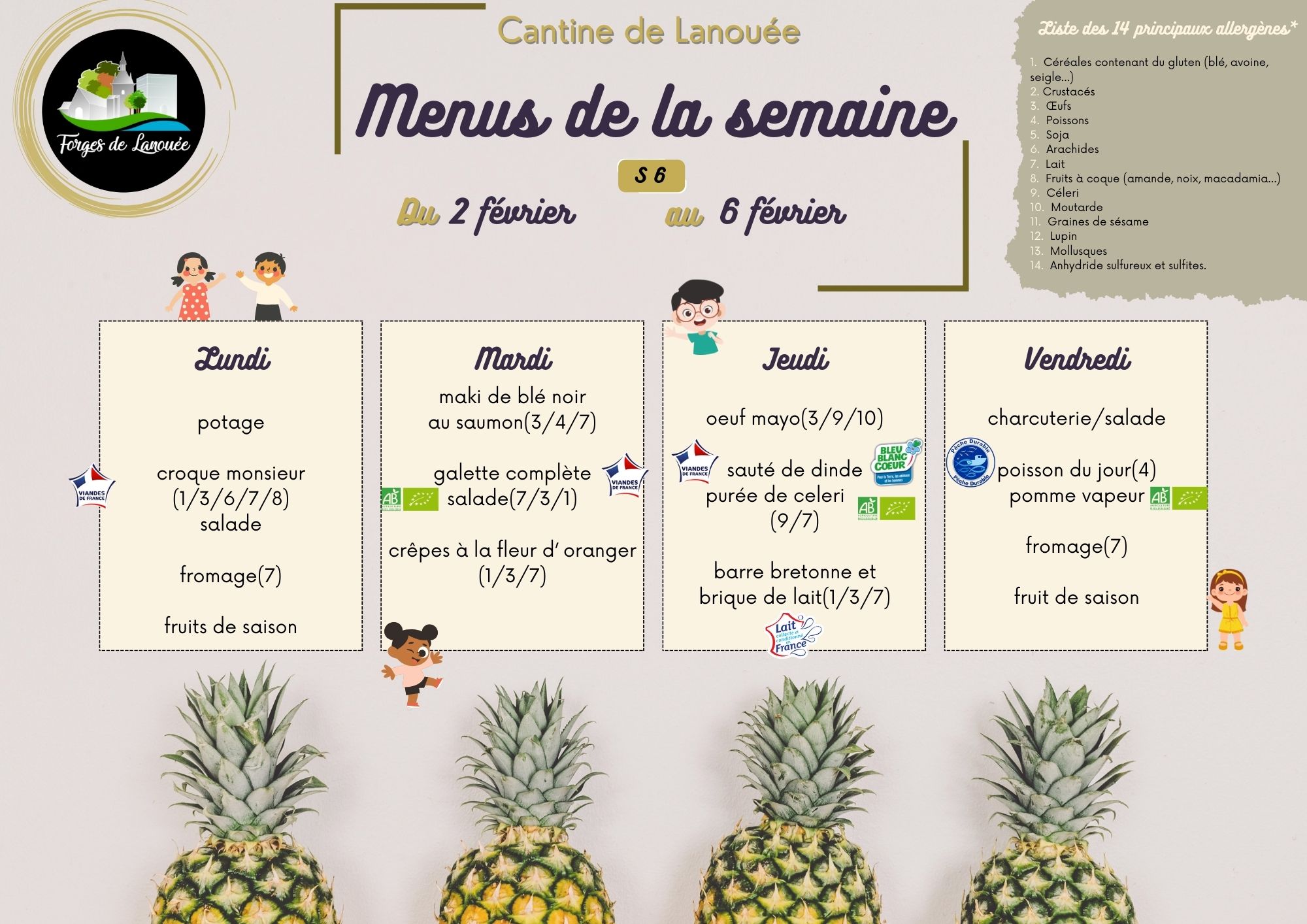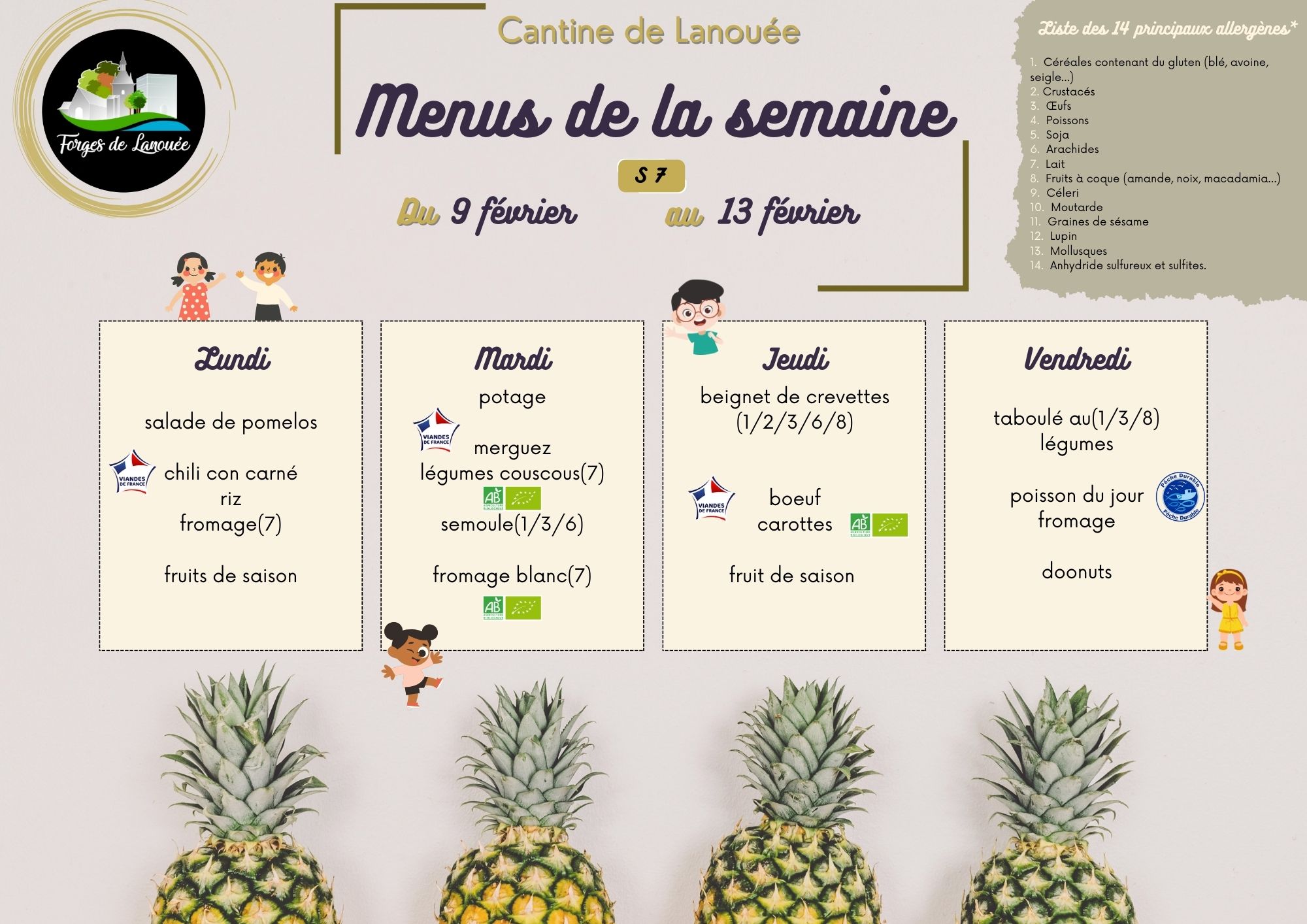 Retrouvez ici les menus de la cantine :