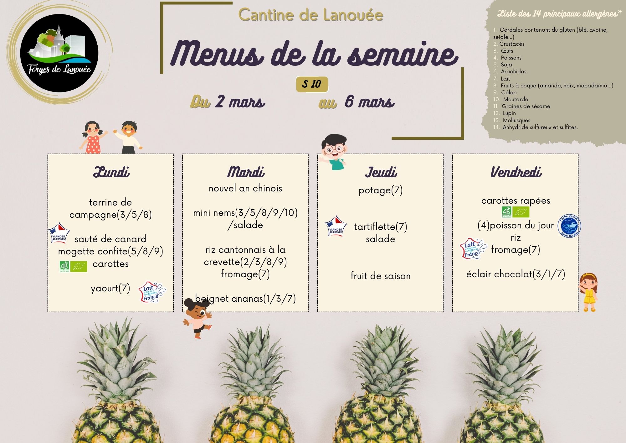 L'équilibre alimentaire est une question importante pour la santé de nos enfants. C'est pourquoi nous vous proposons, chaque mois, de retrouver le menu prévu par le restaurant scolaire. Vous aurez ainsi la possibilité d'harmoniser les besoins nutritifs de vos enfants pour les repas à la maison. Pour grandir sereinement, mangeons sainement!