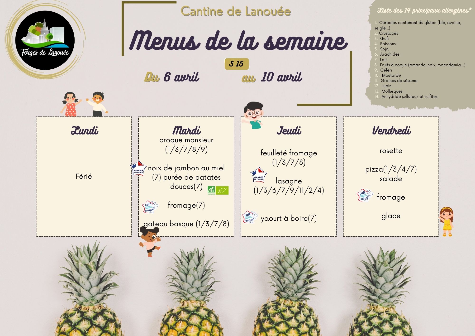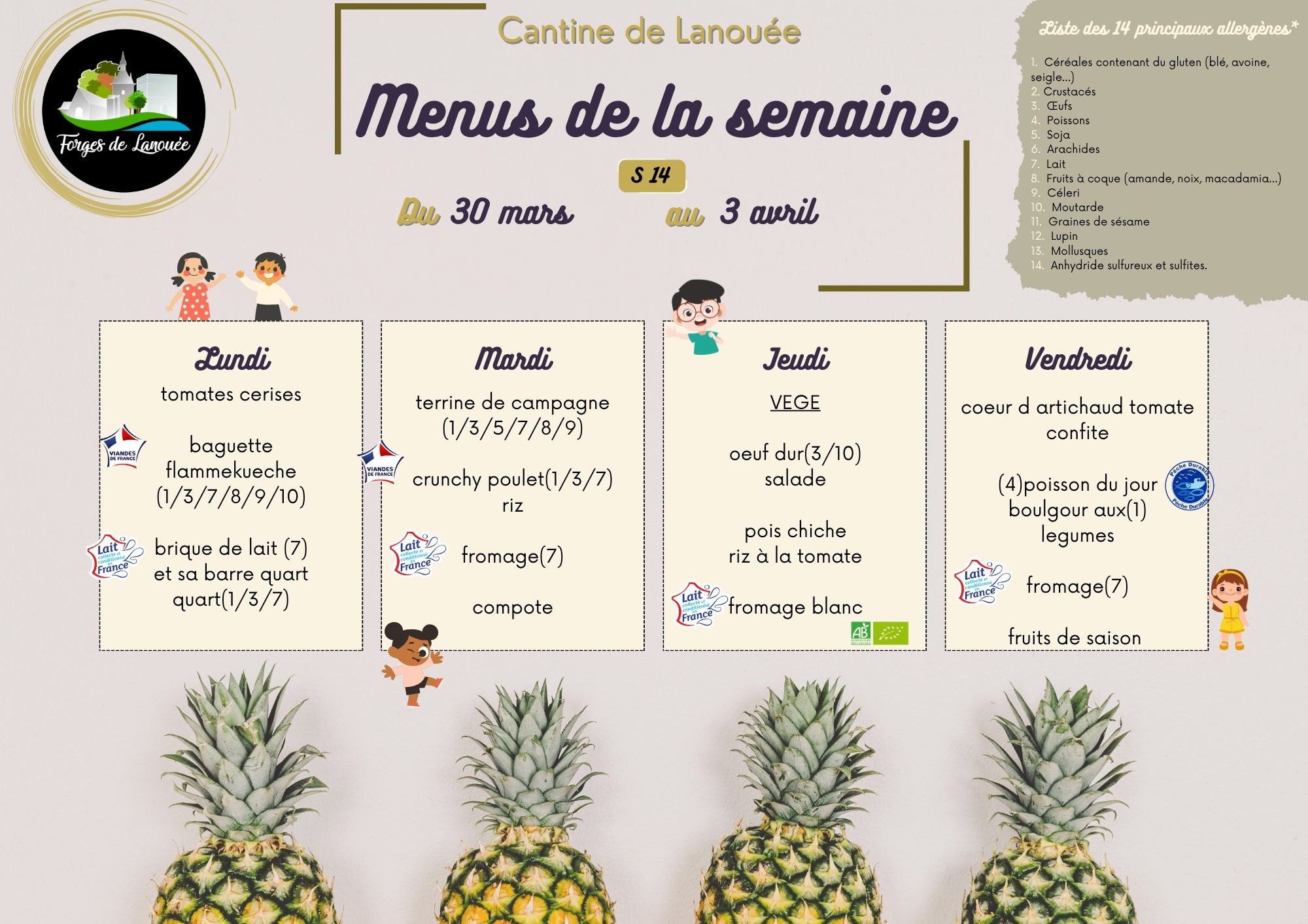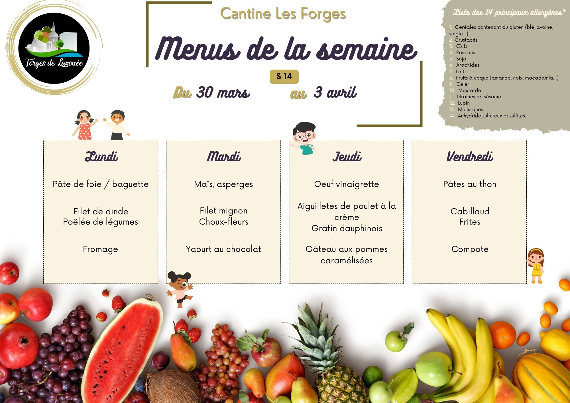 Retrouvez ici les menus de la cantine :