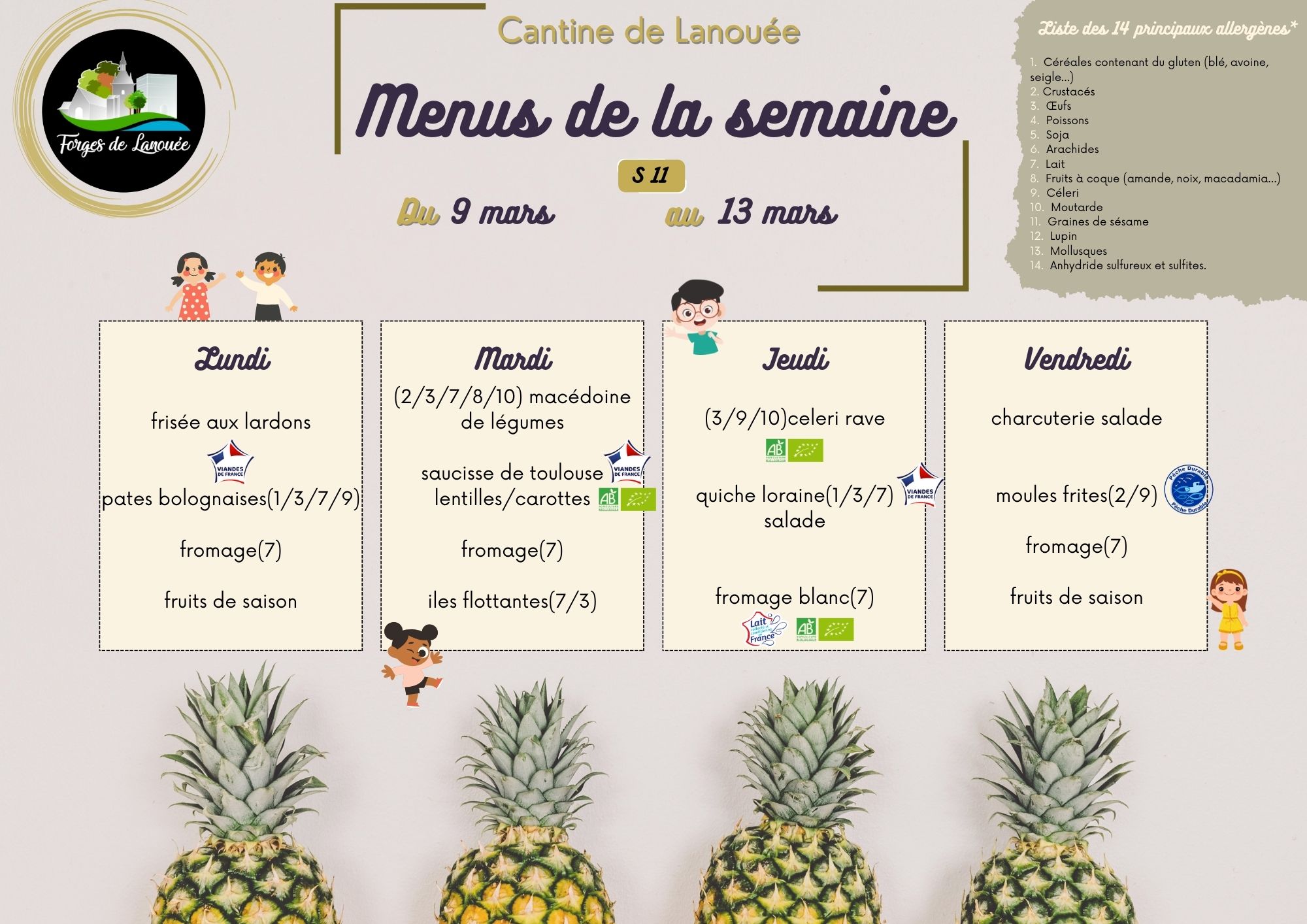 Retrouvez ici les menus de la cantine :